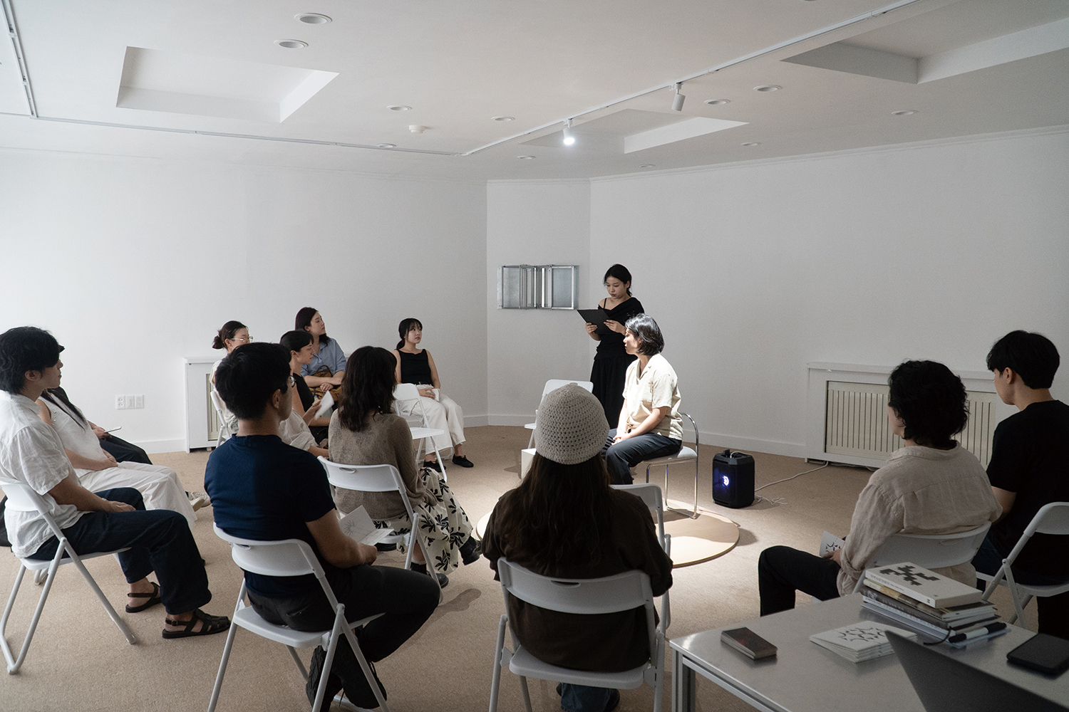 Lee Yehyun (Lee): I studied Fine Art in the Netherlands and Belgium during my undergraduate years. However, I eventually withdrew from this sphere, mainly because I struggled to see a sustainable economic future in conventional artistic practice. Upon returning to Korea, I worked at a print shop and later as a curatorial researcher at a private art museum. From around 2010, I became fascinated by the small-scale exhibition venues often referred to as ¡®new independent spaces¡¯, and I began visiting them across Seoul. In attempting to find ways to break free from the rigidity of existing exhibition formats, I opened an offline space in Huam-dong in 2021. There, I tested exhibition practices that departed from the expected roles and forms of contemporary art spaces. We avoided signage, posters or leaflets, and instead prioritised direct encounters—welcoming visitors personally and placing an emphasis on relational engagement. After operating there for two years, I moved to the current location at the UnWoo Art Museum in Seongbuk-dong, where the platform was oriented more explicitly around text.