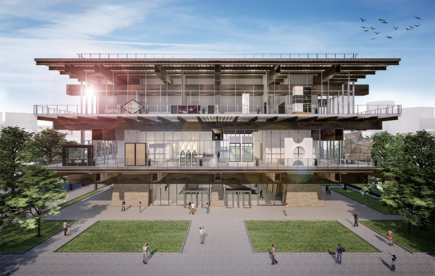±¹¸³µµ½Ã°ÇÃà¹Ú¹°°ü °³°üÀü Áß ¹Ú¹°°ü ¿ÜºÎ ¹ßÄÚ´Ï¿¡ °Ç¹°ÀÇ 1:1 ÀÔ¸éÀ» Àü½ÃÇÏ´Â ¡®°ÇÃà ÆÄ»çµå ½Ã½ºÅÛ¡¯ÀÇ ·»´õ¸µ À̹ÌÁö. ©Ministry of Land, Infrastructure and Transport + SIGONGtech Co., Ltd