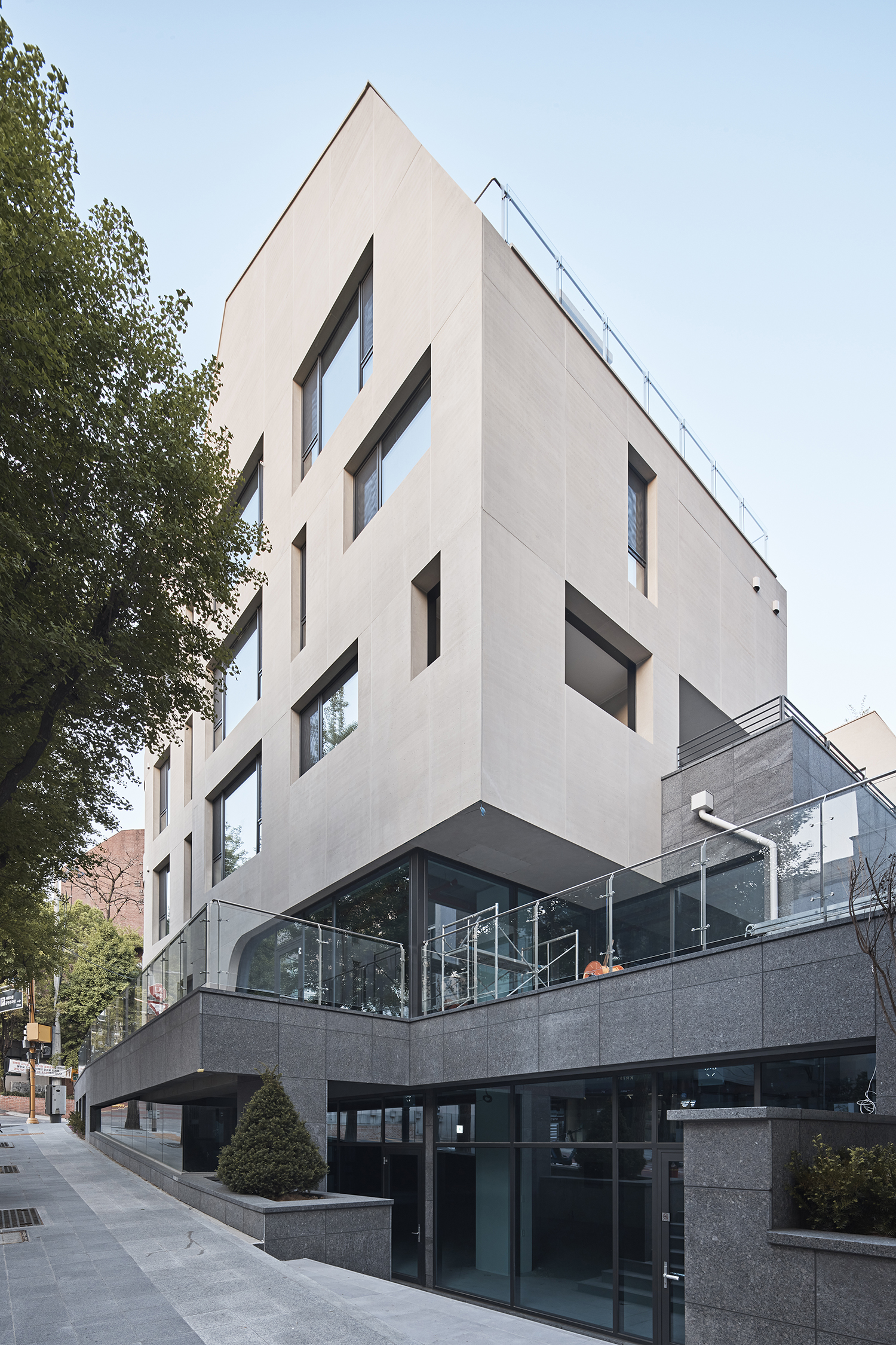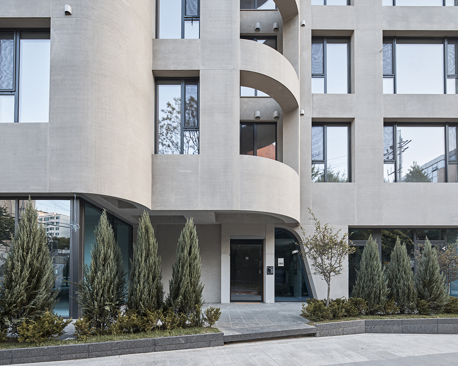 °Ç¹°Àº ÁöÇü¿¡ ±â´ëµí ÀÚ¿¬½º·´°Ô ³õÀÎ 4Ãþ ±Ô¸ð·Î, ÁÖº¯ ȯ°æÀ» ¾ÐµµÇϱ⺸´Ù Á¶È·Ó°Ô ¾î¿ì·¯Áø´Ù. ¸Å½º´Â °¢°¢ÀÇ ÁÖ°Å À¯´Ö ³»ºÎ¿¡¼ Ãâ¹ßÇÑ ³í¸®¿¡ µû¶ó Çü¼ºµÆ´Ù. ºÎµå·¯¿î °î¼± ¹ßÄÚ´Ï¿Í µÕ±Ù ¸ð¼¸®´Â ¾ð´ö Á¤»óÀÇ µµ·Î È帧°ú ¸®µë¿¡ ¹ÝÀÀÇÏ¸ç µµ½ÃÀÇ °á¿¡ ¸ÂÃá °ÇÃàÀû Á¦½ºÃ³¸¦ ¸¸µé¾î³½´Ù. 1ÃþÀº ¡®µµ½ÃÀû °æ°è(civic threshold)¡¯·Î ±¸»óµÆ´Ù. °æ»çÁö¿¡ ³õÀÎ ´ëÁö Ư¼º»ó ÁöÇÏ 1Ãþ ¶ÇÇÑ °Å¸®¿¡¼ ÀÚ¿¬½º·´°Ô Á¢±ÙµÇ¸ç, 1Ãþ°ú ÇÔ²² ÀÌ °æ°è¸¦ È®ÀåÇÑ´Ù. Ä«Æä, ¸®Å×ÀÏ, ȤÀº ¼Ò±Ô¸ð Ŭ¸®´Ð µî Áö¿ª Ä¿¹Â´ÏƼ¿¡°Ô ¿¸° ÇÁ·Î±×·¥ÀÌ µé¾î¼¸ç °Å¸®¿Í °ÅÁÖ »çÀÌ¿¡ ÀÚ¿¬½º·¯¿î ´ëȸ¦ ¸¸µé¾î³½´Ù. ´Ü¼øÇÑ »ó¾÷ °ø°£ÀÌ ¾Æ´Ñ, ÀÌ¿ô°úÀÇ Á¢Á¡À» ³ÐÈ÷´Â µµ½ÃÀû ÀåÄ¡ÀÎ ¼ÀÀÌ´Ù. »óºÎ¿¡´Â ÃÑ 12¼¼´ë°¡ ¹èÄ¡µÇ¸ç Å« âÀ» ÅëÇØ °¡·Î¼ö±æÀÇ ³ìÀ½À» °Å½Ç ¾ÈÀ¸·Î ²ø¾îµéÀδÙ. À̰÷ÀÇ ½Ã¼±Àº µµ½Ã¸¦ ³»·Á´Ùº¸´Â °ÍÀÌ ¾Æ´Ï¶ó, µµ½Ã¿Í Çϳª°¡ µÇ¾î ³»ºÎ¸¦ ÀÀ½ÃÇÑ´Ù. µµ½Ã¶ó´Â ¡®¹æ¡¯ ¾È¿¡¼ »îÀº ´ÙÃþÀû ºÐÀ§±â¸¦ Ÿ°í À¯±âÀûÀ¸·Î ÆîÃÄÁø´Ù.