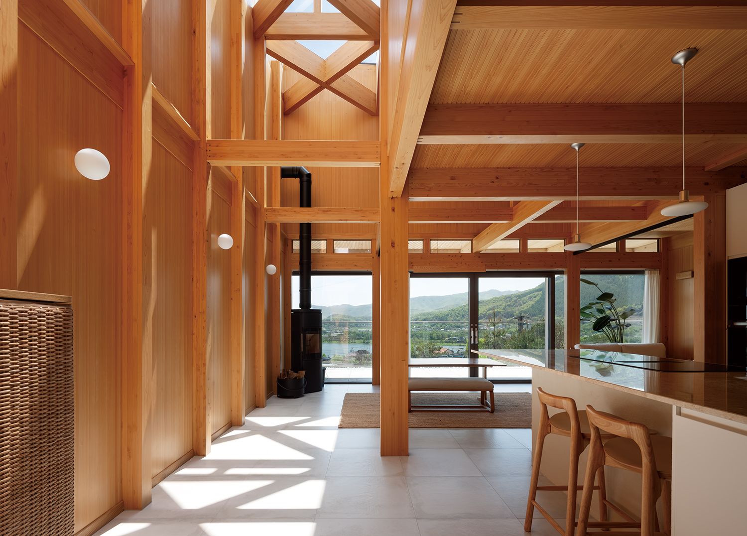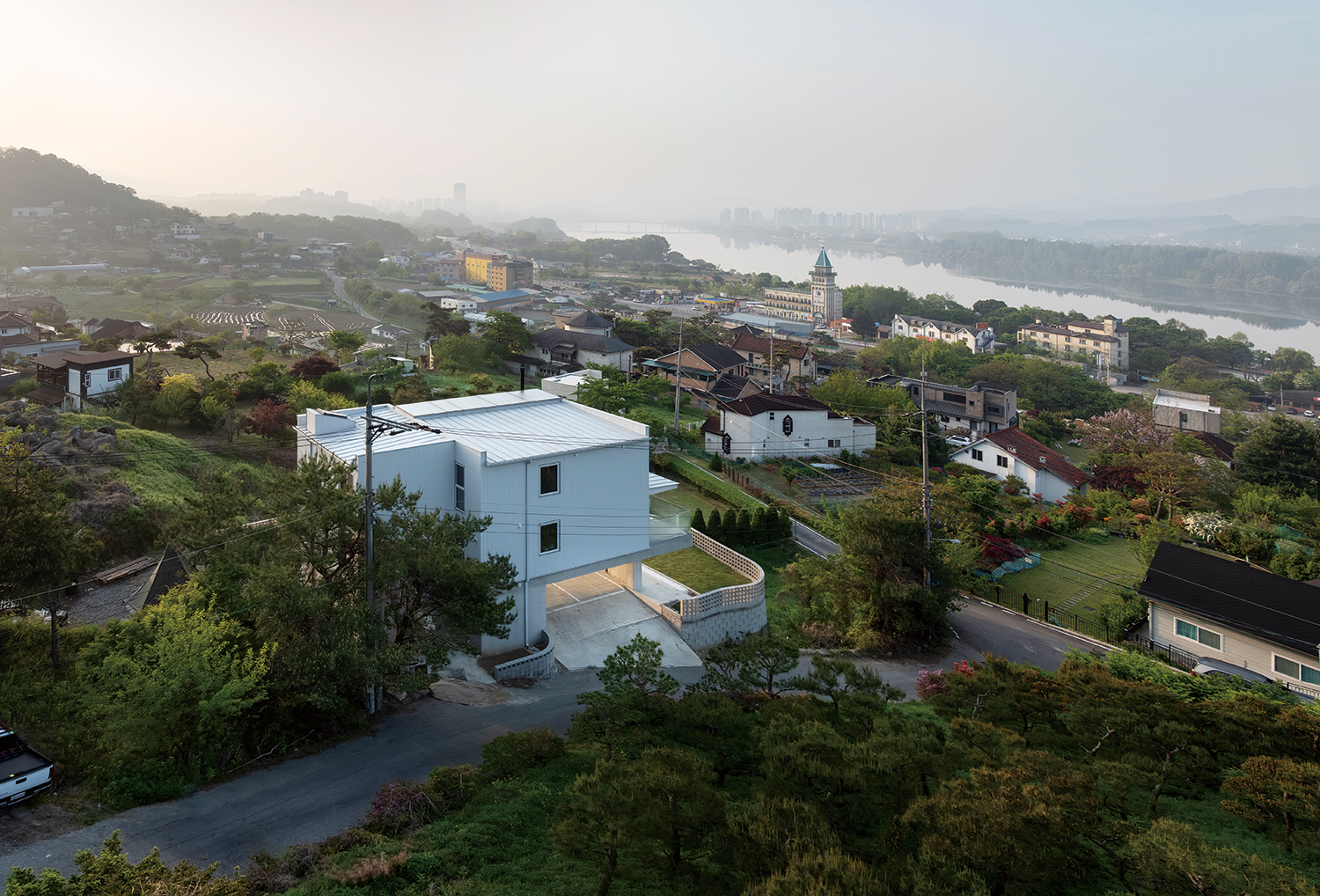 ´ëÁö´Â ³²ºÏÀ¸·Î ±æ°Ô ³õ¿© ÀÖ¾ú°í, °Ç¹° ¿ª½Ã ³²ºÏÀ¸·Î ±ä ÇüŸ¦ ¶ì´Â °ÍÀÌ ÀÚ¿¬½º·¯¿ü´Ù. ¹®Á¦´Â ³²ÂÊ °À» ÇâÇÑ ºä¿Í 䱤À̾ú´Ù. ¼³°è ±â°£ µ¿¾È ´ëºÎºÐ ³²Ãø ÀÔ¸é Àüü¸¦ âÀ¸·Î ó¸®Çß¾ú´Ù. ³²ºÏÀ¸·Î ±ä ¸Å½º ¾ÈÀ¸·Î ±í°Ô ºûÀ» ²ø¾îµéÀÌ·Á´Â ¸ñÀûÀ̾ú°í, °ÀÌ º¸ÀÌ´Â ºä°¡ ´ëÁöÀÇ Á¤Ã¼¼ºÀ» ¸ðµÎ ¼³¸íÇÏ´Â µíÇß´Ù. ±×·¯³ª ½Ã°£ÀÌ Áö³¯¼ö·Ï ±×·± °ÇÃàÀû Á¦½ºÃ³´Â ³Ê¹« ÆòÀÌÇϰí ÁøºÎÇØ º¸¿´°í °á°ú ¶ÇÇÑ ±â´ëµÇÁö ¾Ê¾Ò´Ù. °À¸·Î ÇâÇÑ ºä´Â ÃæºÐÈ÷ ÁÁ¾Ò´Ù. ³ÑÄ¡µµ·Ï ÁÁ¾Ò´Ù. ±×·¯³ª ³ÑÄ¡´Â °ÍÀ» ³ÑÄ¡´Â ´ë·Î ¹Þ¾ÆµéÀ̴ ŵµ¿¡ °ÅºÎ°¨ÀÌ µé¾ú´Ù. ±×·¡¼ õâÀ» µµÀÔÇß´Ù. ³ÑÄ¡´Â °ÍÀ» ´Ù¼Ò ÁÙ¿© ¸ðÀÚ¶÷À» ¸¸µé°í, ±× ¸ðÀÚ¶÷À» ÅëÇØ ¿ÀÈ÷·Á ´õ ±ØÀûÀ¸·Î ¿¬ÃâÇϰíÀÚ Çß´Ù. ÀÌ·¯ÇÑ °ø°£Àû ÅÍÄ¡°¡ ÇǶó³×½ÃÀÇ °ø°£À» ¸¸µå´Â ¿òÁ÷ÀÓÀÌ µÉ ¼öµµ ÀÖ°Ú´Ù´Â »ý°¢Àº ³ªÁß¿¡ µé¾ú´Ù. °ÇÃàÀº ¿ÜºÎ¿Í ³»ºÎÀÇ Á¦½ºÃ³¸¦ ¿ÏÀüÈ÷ ´Ù¸£°Ô ÃëÇß´Ù. ÀÌÁ¦´Â ³»¿ÜºÎ°¡ ¸íÈ®È÷ ´Þ¶óµµ µÈ´Ù. ±×°ÍÀÌ ³ª¿¡°Ô ÈÞ½ÄÀ» ÁÙ ¼ö ÀÖ´Ù¸é. À̰ÍÀº ³»°¡ 5³â° ³ª¹« ÁýÀ» Áþ°í, ³ª¹«·Î ¿ÜÀåÀ» ¸¶°¨ÇÑ Áý¿¡¼ »ì°í ÀÖ´Â °æÇè¿¡¼ Èê·¯³ª¿Ô´Ù. °ü¸®ÀûÀ¸·Î À¯¿ëÇÏ´Ù¸é Àç·á»Ó¸¸ ¾Æ´Ï¶ó °ø°£µµ ¿¬±ØÀÇ ¹«´ëó·³ ¸ðµç Àå¸éÀÌ Ã¶ÀúÇÏ°Ô ºÐ¸®µÇ¾îµµ »ó°ü¾ø´Ù. ¾÷¹« °ø°£°ú °ÅÁÖ °ø°£À» ³ª´©°í °ÅÁÖ °ø°£À» ´Ù½Ã ħ½Ç°ú °Å½Ç·Î ±¸ºÐÇÏ´Â °ÍÀÌ °ü°ÇÀ̾ú´Ù. ÀÌ´Â ¸ðµÎ ¼öÁ÷Àû ·¹º§·Î ÇØ°áÇß´Ù. ´ç½Ã °ÇÃàÁÖ´Â ÁýÀ» ¼öÁ÷À¸·Î Ç®¾îµµ ±¦Âú´Ù´Â ÁöħÀ» ÁÖ¾ú°í, ¶¥ÀÌ ¾ÉÀº ¸ð¾ç ¿ª½Ã ¼öÁ÷À¸·Î Ǫ´Â °ÍÀÌ ÀûÇÕÇØ º¸¿´´Ù. ÇǶó³×½ÃÀÇ ¡®»ó»óÀÇ °¨¿Á¡¯Ã³·³ °æ°è ¾øÀÌ °µµ¸¸ Á¸ÀçÇÏ°í ±× ¼Ó¿¡¼ ÇѽÃÀû È޽ĸ¸ °¡´ÉÇÑ ¿îµ¿¼ºÀÇ ¿ªµ¿ °ø°£ÀÌ ¾Æ´Ï¶ó, ¹æ ¼ÓÀÇ ¹æÃ³·³ ÄÑÄÑÀÌ µÑ·¯½Î¿© ¸ØÃß°í ¸Ó¹«´Â ´ÜÀýµÈ Àå¸éÀ» ¸¸µé°íÀÚ Çß´Ù. ±ÛÀ» Á¤¸®ÇÏ¸ç º¸´Ï ³ªÀÇ ÀÇÁö¿Í »ó°ü¾øÀÌ ¿©ÀüÈ÷ ÇǶó³×½ÃÀÇ »ó»ó ¼Ó¿¡¼ ¿ªµ¿ÇϰíÀÚ ÇÏ´Â ¾È°£ÈûÀÌ ³²¾Æ Àֱ⵵ ÇÑ µíÇÏ´Ù. °ÇÃà°¡·Î¼ ¹«¾ùÀ» ²Þ²Ù¾ú°í °á·ÐÀûÀ¸·Î ¹«¾ùÀ» Çß´ÂÁö¸¦ ¸íÈ®È÷ ÇÏ´Â °ÍÀº ¿©ÀüÈ÷ ¾î·Á¿î ¼÷Á¦´Ù. ÇÑÆí, ÀÌ ÁýÀº ¸ñ¼öÀÌÀÚ À¯Æ©¹ö·Î Ȱµ¿ÇÏ´Â ¡®¾ç¹ÝÀ塯ÀÇ ÁýÀÌ´Ù. ¸ñ¼ö¿¡°Ô ¼³°è ÀÇ·Ú¸¦ ¹Þ¾Æ °ÇÃà°¡·Î¼ ¸Å¿ì ¿µ±¤À̾ú´Ù. ÀÌ ÁýÀ» ½ÇÁúÀûÀ¸·Î ¿Ï¼º½ÃŲ »ç¶÷Àº ¾ç¹ÝÀåÀ¸·Î, °úÁ¤ ³»³» Áñ°Ì°Ô Çù¾÷Çß´Ù. ¸¶Áö¸·À¸·Î ±×¿¡°Ô °¨»çÀÇ ¸»À» ÀüÇÑ´Ù.