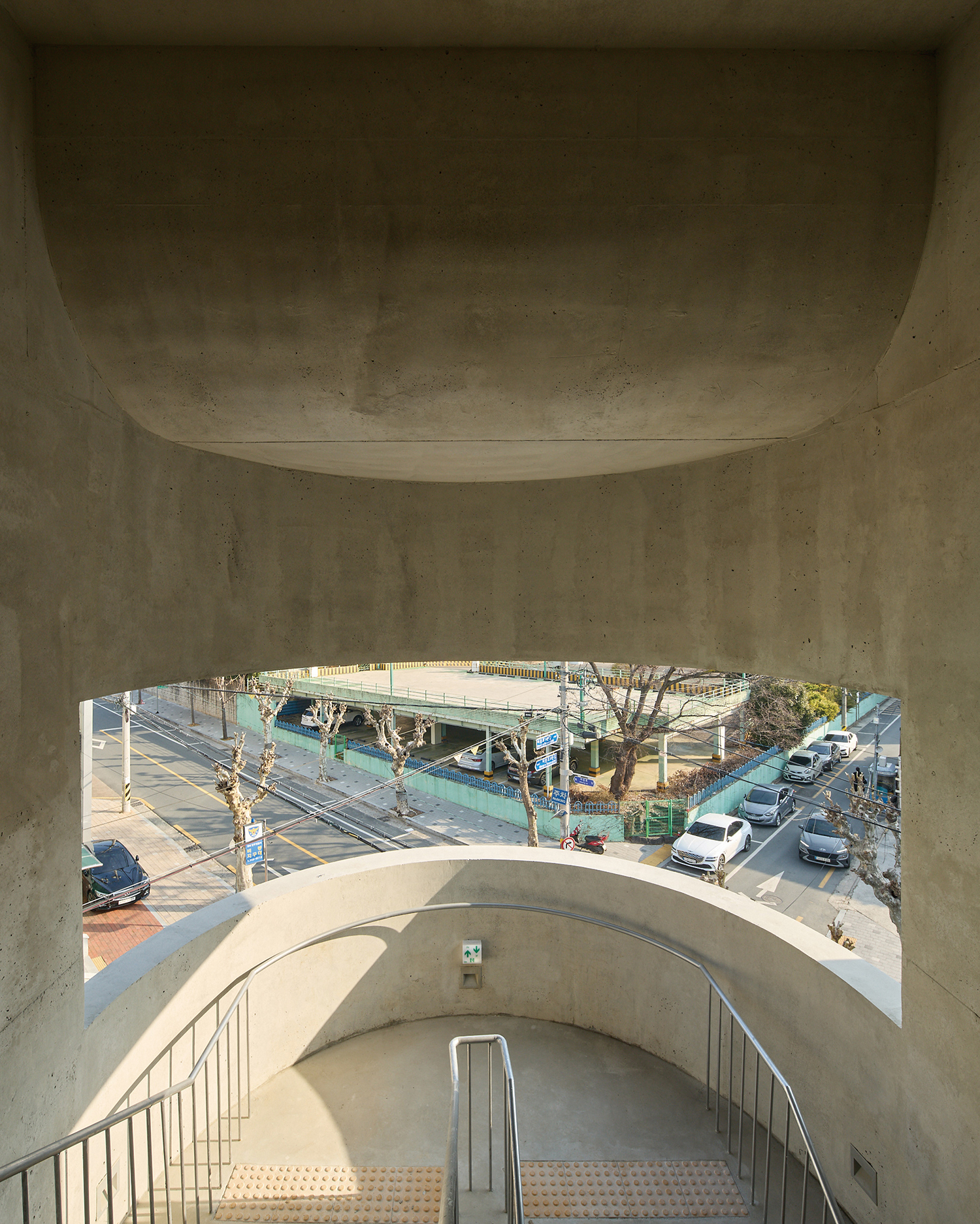 À¯: °Ç¹°ÀÌ À§¾ÐÀûÀÌÁö ¾ÊµÇ µµ·Î¿Í ¸¸³ª´Â °áÀýÁ¡¿¡¼´Â ÀÎÁö¼ºÀ» °¡Á®¾ß ÇÑ´Ù°í »ý°¢Çß´Ù. ÄÜÅ©¸®Æ®·Î µÈ µÕ±Ù °è´Ü½ÇÀº ÇÁ·ÎÁ§Æ®¿¡¼ °¡Àå Á¶ÇüÀûÀÎ ¿ä¼Ò¿´´Âµ¥, ½½¸´ÇÑ °³±¸ºÎ¸¦ ¸¸µé±â À§ÇØ ±Ý¼Ó °ÅǪÁýÀ» Àû¿ëÇß´Ù. ½Ã°øÀÌ ±î´Ù·Î¿üÁö¸¸ ÀÌ·± ÀÛÀº Æ´µéÀÌ µµ½Ã¿ÍÀÇ ¿¬°á¼ºÀ» ¸¸µå´Â ºÎºÐÀ̶ó »ý°¢Çß´Ù.