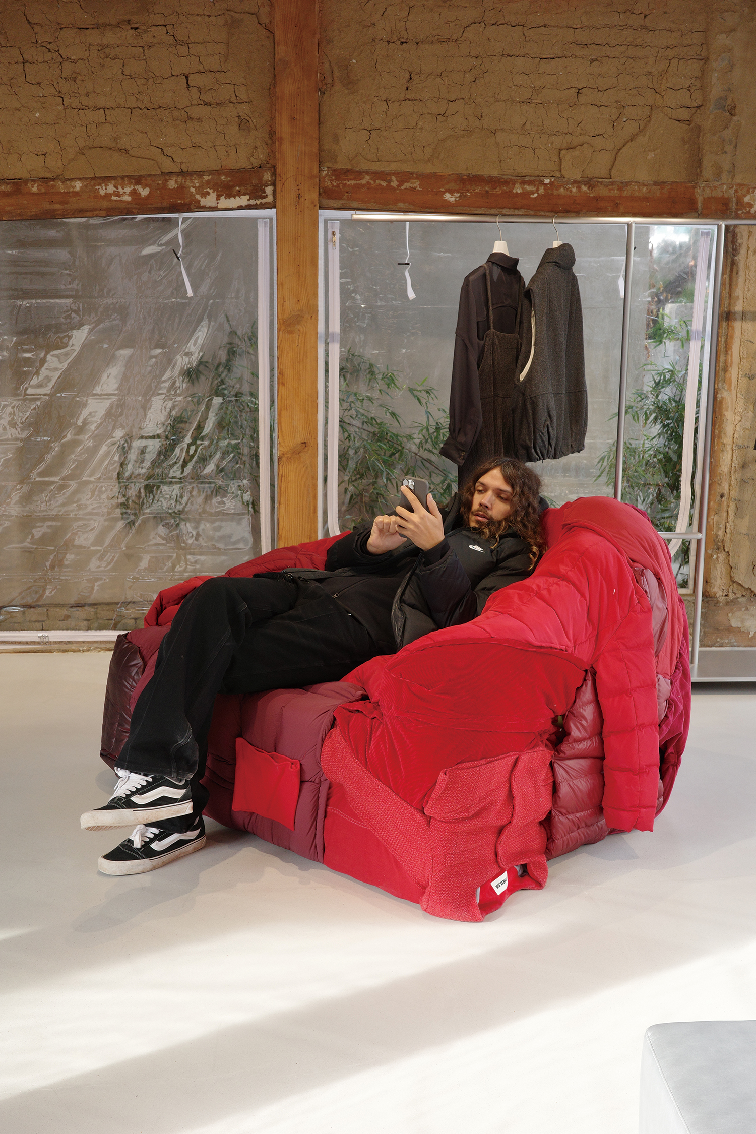 ´©¸®¿¡ÇÁ: ºê·£µåÀÇ °íÀ¯ÇÑ DNA¸¦ Á÷Á¢ÀûÀ¸·Î µå·¯³»ÁÖ´Â Àç·á¸¦ ¼±ÅÃÇß´Ù. ¿À·¡µÈ ´õÀϸ¶ÀÇ ÀÇ·ù Á¶°¢µé·Î µ¡¾º¿î ¾È¶ôÀÇÀÚ´Â ºê·£µåÀÇ ¿ª»ç¿Í °¡Ä¡¸¦ °ø°£ ¼Ó¿¡ ½Ã°¢ÀûÀ¸·Î Á÷Á¶ÇÑ °ÍÀÌ´Ù. ¶Ç Ä«¿îÅÍ´Â Á÷¹°·Î ¸¸µç ÀçȰ¿ë ŸÀÏÀ» »ç¿ëÇØ ¸¸µé¾ú´Ù. ¿ÜºÎ·Î µå·¯³ º®¸é°ú ¿À·¡µÈ ¸ñÀç µî ±âÁ¸ °ÇÃà ±¸Á¶ÀÇ °ÅÄ¥°í ÀÚ¿¬½º·¯¿î ¹Ì°¨À» ±×´ë·Î º¸Á¸Çߴµ¥, ºÒ¿ÏÀüÇÔ°ú ÁøÁ¤¼ºÀ» ¼ÒÁßÈ÷ ¿©±â´Â ºê·£µåÀÇ °¡Ä¡°üÀ» ¹Ý¿µÇÑ °ÍÀÌ´Ù. ÀÌ·± ¿ä¼ÒµéÀº ±ò²ûÇÑ Èò»ö º®À̳ª ±Ý¼Ó ¸¶°¨Àç °°Àº Çö´ëÀû ¿ä¼Òµé°ú Á¶È¸¦ ÀÌ·é´Ù. ÀÌ´Â ´õÀϸ¶ÀÇ ½Ã´ë¿Í È£ÈíÇÏ´Â ¹Ì´Ï¸ÖÇÑ µðÀÚÀÎ Á¢±Ù ¹æ½Ä¿¡¼ Âø¾ÈÇÑ °ÍÀÌ´Ù.